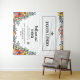 Beautiful floral backdrop for your business personalised with your logo and social media. Add a QR code as well. Yellow, blue and coral floral backdrop with social media, logo, and tagline.