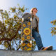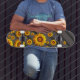 Beautiful yellow flowers on grey, black stripes skateboard