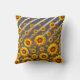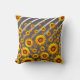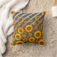 Beautiful yellow flowers on grey, silver stripes cushion