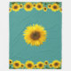 Beautiful Yellow Sunflowers on Teal Fleece Blanket