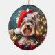 Beautiful Yorkshire Terrier with Santa Hat Ceramic Tree Decoration
