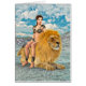 3D rendering of a beautiful young woman and a lion on a desert landscape background