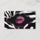 Makeup artist salon spa beauty business card with lips and modern zebra animal print background.