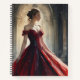 Immerse yourself in the opulence of a fairytale with this stunning princess in a luxurious red and black gown. The watercolor captures the essence of royalty in a majestic palace.