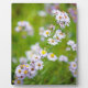 A photograph of a stem of Aster flowers in a field.
