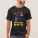 I give wanted to give this a 4 instead of a 5 because these Basic DARK T0shirts run unexpectedly SLIM or Narrow. Which is great if you do not have a potbelly, but I have a paunch. It isn't the shirt's fault that I've got a beer belly. The design and shirt itself is a quality cotton shirt. The color is more of a deep purple, but still a very pretty color. The Basic DARK T-shirts run a bit SLIMMER than the Basic Ts. The neck is a fraction narrower (or seems to be narrower) also. I'm a paunchy middle-aged woman and my neck is 12 inches (31cm) thick and the neckline fell about the same as in the photo of the man, and I had the desire to tug it a bit. So if you're a thick necked man or like loose shirts, be aware these are slimmer shirts. Once I get rid of my lockdown paunch it'll look great. The shirt washed well in cold water with no apparent bleeding. We don't have a dryer, so it hung dry. Did not shrink. Love the colors and the design. The design looks smaller on my shirt than it does on the model on-line. But still, it looks good on the shirt. The printing looks as it does on the model, just the size seems fractionally smaller. Washed garment in cold water, hung dry and design appeared unaffected.