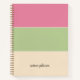 This notebook features a simple colour block design with shades of pink, sage green, and cream, offering a fun and elegant look. The fruit basket colour pattern is ideal for infusing a touch of summer vibrancy into your office or back-to-school aesthetic. Additionally, your name will be inscribed in elegant calligraphy script.