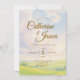 Wedding Invitation with Beauty Scenery of Green Hill and Blue Sky Watercolor paint