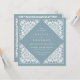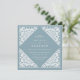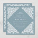 Elegant vintage wedding invitations in dusty slate blue feature an ornately detailed deco border that evokes the look of cut paper in a papel picado style. Square shape.