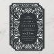 Elegant vintage wedding invitations in rich, inky off-black feature ornate detailing that evokes the look of cut paper in a papel picado style. Select the Ticket shape to complement the unique shape of the deco-style details.