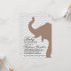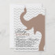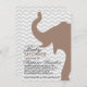 A baby shower invite featuring a big elephant design in beaver colour with grey chevron background