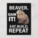 Eat Build Repeat Funny Beaver Animal Postcard designed by Nisha Prabhu. Featuring funny cute beaver animal with playful typography ''Beaver Dam IT Eat Build Repeat ''. Looking for a fun and quirky postcard to send to your friends or family? Look no further than this hilarious "Eat Build Repeat" postcard featuring a cute beaver character. Perfect for anyone with a great sense of humour, this postcard is sure to bring a smile to anyone's face. So go ahead, send some laughter in the mail with this funny beaver postcard!