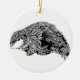The front of this ornament shows a detailed black and white drawing of a beaver, while the text on the back can be edited to meet your needs.
