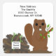A cute beaver with big teeth and a beaver dam with a cute sign on it. Customise with your new address.
