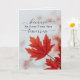Inspirational greeting card depicts a simple fall nature photograph with a red leaf. It features the encouraging Christian worship hymn, "Because He lives I can face tomorrow. Because He lives, All fear is gone. Because I know He holds the future, And life is worth the living just because He lives." Autumn image by Cole Keister.