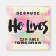 Modern Brush Script Font Duo with words in Black, "Because He Lives I can Face Tomorrow." Design is on techno modern TV glitch screen in bright colours.