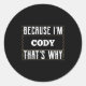 Because I'm Cody Name Cody Classic Round Sticker