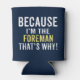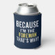 Because I'm the Foreman, That's Why! WordArt typography in uppercase distressed font lettering in white and yellow.