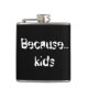 Does this really need a description? I think it says it all. Kid? We love them but man do we need a break sometimes from them. This is a fun and meant to be funny take on why we would need a flask. I am not condoning drinking while with your children. It is meant to be all in good spirits (see what I did there?)