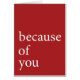 because of you... I found my soulmate. I graduated college. I became a better person. I found love. There are hundreds of ways to finish this simple message. The inside is blank for you to decide your ending.