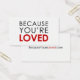 The Because You're Loved incentive centralises around these cards. Bring them with you and give them out with a good deed wherever you can!