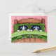 Whimsical cat art postcard. 2 black and white cats peering at 3 grey mice from behind the bed sheets. Created from an original painting 2008 Lisa Marie Robinson