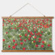 The polyester fabric displayed many wrinkles and several sharp creases throughout. At the bottom of the tapestry, I noticed a bulge in the fabric because it was not pulled tight enough before being connected to the wooden boards. It took me over an hour to spay water on the tapestry before putting it on an ironing board where I used a warm iron over a polyester cloth to remove the wrinkles and creases in the material. I was able to get out the wrinkles and creases that made that tapestry look as beautiful as its picture.