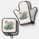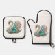 Bedazzled Diamond Swan Gold Crystal Bling Oven Mitt & Pot Holder Set