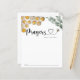 Baby shower activity card features watercolor honeycomb, eucalyptus greenery and buzzing bee. Prayers card prompts guests to share prayers for the parents to be as they prepare for baby.