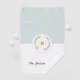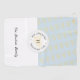 Elegant two tone blue and white, a golden bees pattern with a white round badge and a monogram.