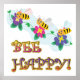 bee be happy three cute bumble bees poster
