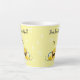 This small latte mug features a design made up of a basket of lemons with a little bee, over a yellow background. On the front and back of the mug are the words "Bee Beautiful!"