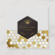 Unique Gradient Gold Bee Logo Honeybee Beekeeper Business Card. This trendy design features a gold honeybee against a gradient hexagonal honeycomb background. The perfect apiary design for a beekeeper business.