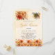 A stylish white and golden watercolored background. Decorated with a bee and yellow and orange flowers.. With the text: Bridal Shower written with a modern hand lettered style script. Personalise and add the name of the bride to bee. Golden and black letters.