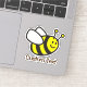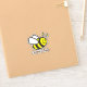 Yellow and black flying smiling honey bee cartoon. Custom text.