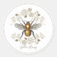 Illustrated artistic golden bee and rose laurel logo envelope seals or product stickers with a trendy modern script typeface. A versatile style personal use or for a variety of professions such as: apiary, honey products, interior design, gardener, florist.