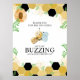 Add a buzz of charm to your bee-day celebration with this adorable party poster! Featuring a cheerful honeycomb background in golden yellow hues and a lovable little bee clutching a honey pot, this personalized poster highlights the birthday child's name and age and welcomes guests, to the celebration. It’s a perfect way to set the tone for a day full of fun and buzzing memories!