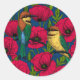 Bee-eaters and poppies drawn and coloured in Illustrator, seamless pattern.