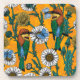 Bee-eaters, blue butterflies and daisies on orange coaster