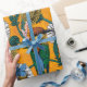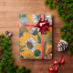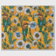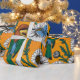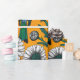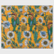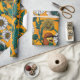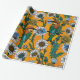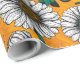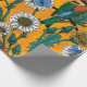 Bee-eaters, blue butterflies and daisies on orange wrapping paper