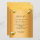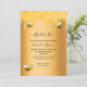 Elegant, fun, summer bridal shower invitation. A faux gold background and faux gold drips. Decorated with happy smiling bumblebees. With the text: Bride to Bee and the name of the bride to be written with a modern hand lettered style script. Black letters.