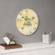 Bee Happy bumble bees yellow honeycomb cute fun Large Clock