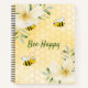 Bee Happy bumble bees yellow honeycomb diary Notebook