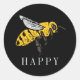 Bee Happy Custom Insect Illustration Classic Round Sticker