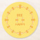 Bee Happy honey bees on yellow honeycomb Round Paper Coaster