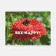 Cute message to "bee happy" with a busy bumble bee collecting pollen from a bright red flower.