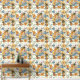 This vibrant artwork features a lively composition of bumblebees and intricate flowers in full bloom. The floral elements, rendered in rich shades of orange, blue, and yellow, create a colourful tapestry that contrasts beautifully with the detailed illustrations of bees. The creamy background enhances the vibrancy of the flowers and the dynamic energy of the buzzing bees, resulting in a lively and engaging pattern that celebrates the harmony of nature.