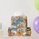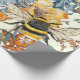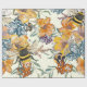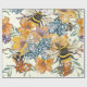 This vibrant artwork features a lively composition of bumblebees and intricate flowers in full bloom. The floral elements, rendered in rich shades of orange, blue, and yellow, create a colourful tapestry that contrasts beautifully with the detailed illustrations of bees. The creamy background enhances the vibrancy of the flowers and the dynamic energy of the buzzing bees, resulting in a lively and engaging pattern that celebrates the harmony of nature.