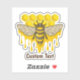 Honey bee with open wings icon over bee hive and honey drops. Custom text.