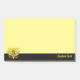 Honey bee with open wings icon over bee hive and honey drops. Custom background colour. Custom text.